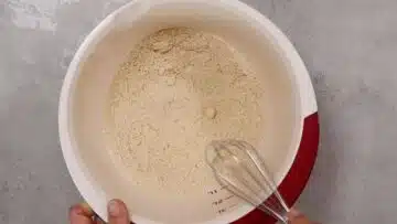 - Ei, Apfelessig sowie Wasser hinzugeben und alles zu einem Teig rühren. Für mindestens 10 Minuten ruhen lassen.